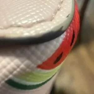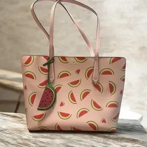 Charming tote with watermelon design. Perfect for casual outings. Features dual handles and playful charm.