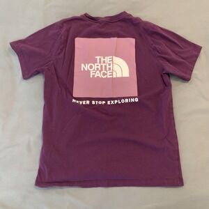 The North Face Shirt Womens Small Purple Box Logo Graphic Tee Short Sleeve Back