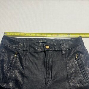 7FAMK Stylish 2 toned animal print black Jeans soft fabric stretch gold accents