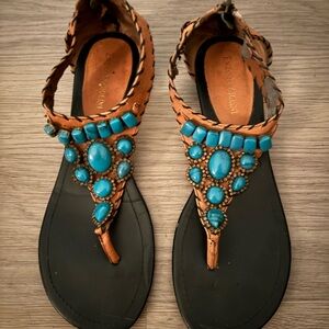 Enzo Angiolini Brown leather turquoise stones with rinestone, zipper in a back, size 8.5