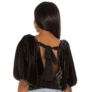 Free People Marie Velvet Open Back Black Crop Top Balloon Puff Sleeve Medium