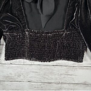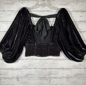 Free People Velvet Marie Puff Sleeve Black Crop Top Women's Open Back Balloon Sleeve Medium