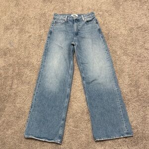 Stylish wide-leg jeans. Light blue wash. Perfect for casual wear.