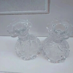 2 Elegant Very thick Crystal Candle Holders. Use a Tea Light or Flip around for Stick Candles. Pre-owned in excellent condition.