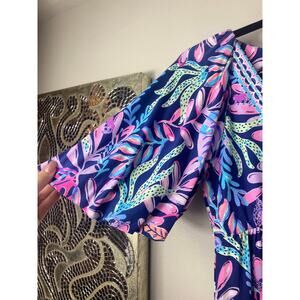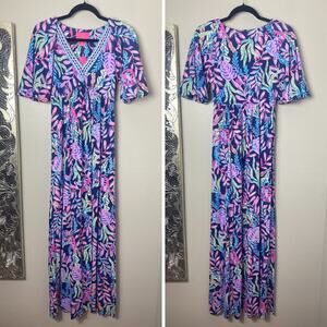 NWT Lilly Pulitzer Manuela Beachy Purple V-Neck Oyster Bay Blue Maxi Dress XS