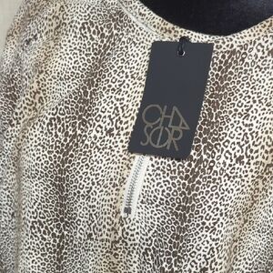 NWT Chaser Leopard Print Quarter Zip Long Sleeve Top SZ Small