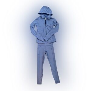 NWT Yogalicious matching set Size Small indigo blue. Features a sleek hooded design and polarlux thick soft fabric. Ideal for casual wear.