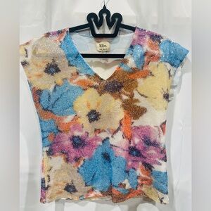 Elie Tahari Multicolor Floral Sequin Blouse