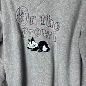 VTG Looney Tunes Penelope Pussycat Gray Fleece V Neck Sweatshirt Women XL