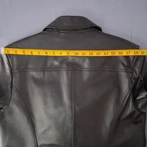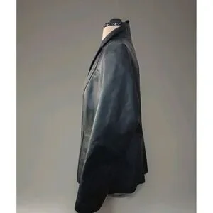 East 5th Womens Sz Large Black Genuine Leather Jacket 90s Classic Button Front