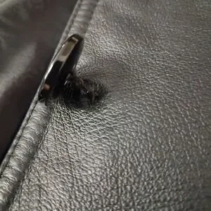 Very good pre-owned condition. No holes rips or stains. Leather is in very good condition. The buttons thread are long, buttons are not loose, this is part of construction but worth mentioning.
