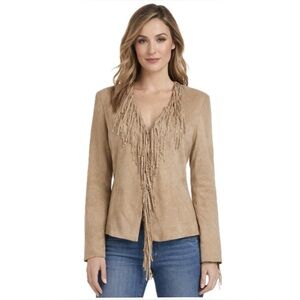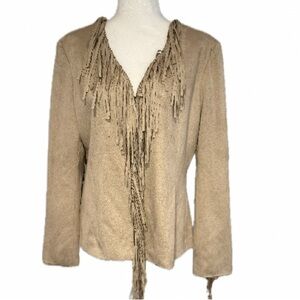 Solitaire Anthropologie, NWT Tan Fringe Jacket faux suede, size L