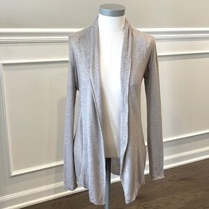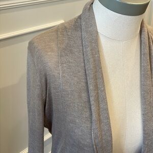 Tan open cardigan from Express. Normal wear and in good condition. Cinch detail at back. Raw hems. Size XS.