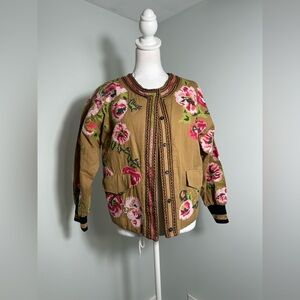 Anthropologie Floral Embroidered Boho Bomber Jacket Size XS