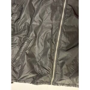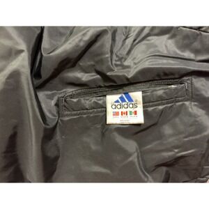 Men's Adidas reversible hooded jacket. TBoth sides include a full zip closure and a hood with drawstring. No rips or tears but some wear on the black side and one stain on the gray. Baggy and oversized.