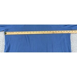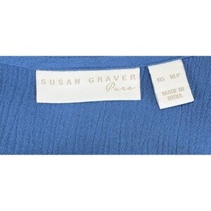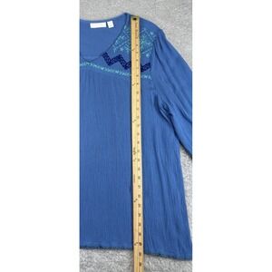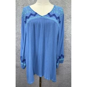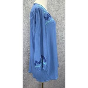 Susan Graver Crinkle Gauze Peasant Tunic Top Blue Embroidered V Neck Petite XL