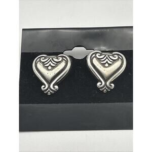 Vtg Brighton Blair Retired Heart Scrolled Brushed Silver Plated Post Earrings