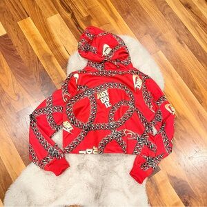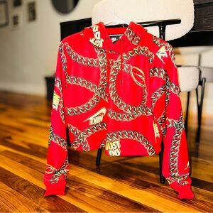 Nike Women's Just Do It Red Gold Chain Graphic Logo Cropped Hoodie