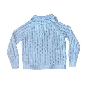 Haven Well Within Open Stitch Johnny Collar Sweater | Light Blue Size Small
