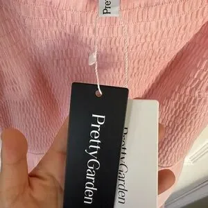 NWT Baby pink tulle midi dress with puff sleeves. Feminine, square neckline and fitted bodice, and tiered skirt.
