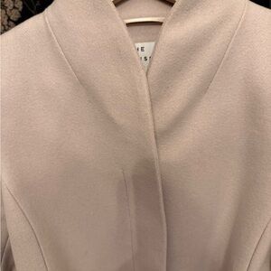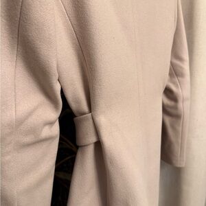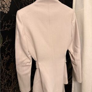 Chic cream jacket with a tailored fit. Features a high collar and button closure. Perfect for a polished look.