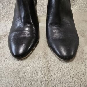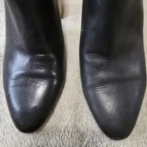 Slip on heeled mules in very good used condition. Faint creases at the toes. 4" heels