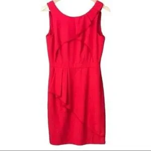 Chic red midi dress with a sleeveless design. Features elegant ruffle detailing. Perfect for stylish outings.