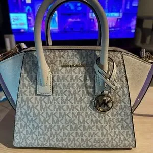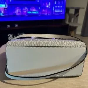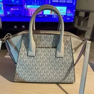 Chic Michael Kors satchel with signature MK pattern. Cream and tan tones. Perfect for everyday elegance. Only used once. Loved it and got lots of compliments at my event! Great with every outfit, casual or formal. She is ready to go out with you.!