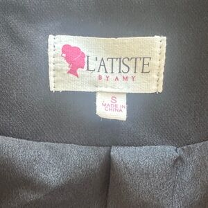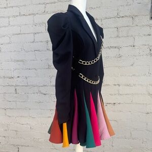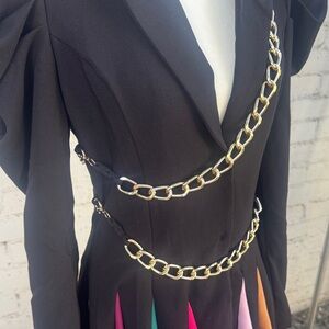 L'ATISTE by Amy Black Coat Dress Rainbow Pleated Skirt Gold Chains Size S