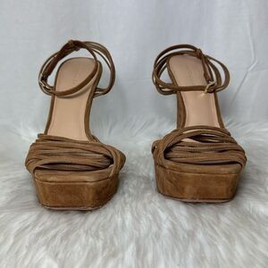Veronica Beard Fletcher Hazelwood Brown Block Heel Suede Platform Sandals Sz 10