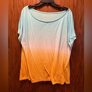 Stylish women's top featuring a beautiful gradient of blue and yellow. Perfect for casual outings.