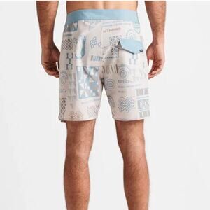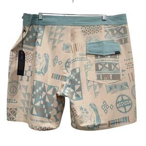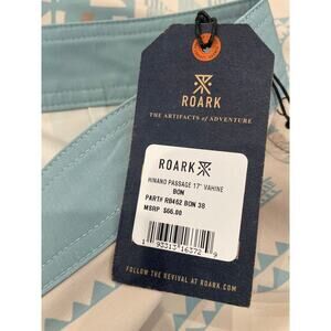 NWT Mens Roark Blue Tan Passage 17 Inch Hinano Vahine Boardshorts Size 38