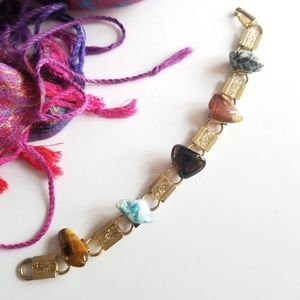 Vintage Rock Collection bracelet with nugget of polished semiprecious stones glued to a gold tone base.