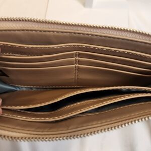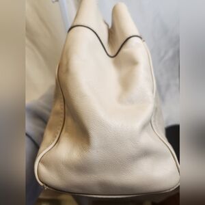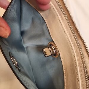 The handbag is a Coach Penelope Carryall model in cream leather with brown snakeskin-embossed trim. It is in gently loved excellent condition! It comes with the matching wallet/wristlet also in excellent condition! The wallet/wristlet measures 4.5"L×7"W and features several card slots! This is a match made in heaven! The leather is soft and supple. Upon inspection, only details noted is very light bottom corner wear on the bag and feet and a small indentation in the leather on the wristlet. Otherwise, both are in amazing condition and ready for a new owner!