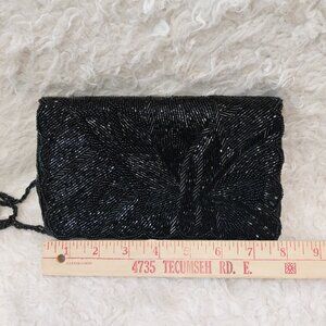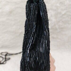 Check out this Handmade Embellished Black Full Beaded Crossbody Purse Bag. it is in very great pre-owned condition. No missing beads and no rips or stains on the bag, minor wear but no rips inside the satin lining.