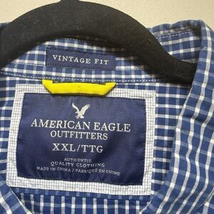 American Eagle Shirt Mens 2XL Blue White Plaid Button Down Vintage Fit Cotton