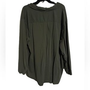 Chic olive button-down shirt by Ava & Viv. Features a classic collar and front pocket. Ideal for versatile styling.