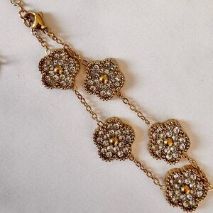 Gold-Toned Stainless Steel Stones Flower Motif Bracelet