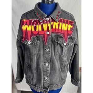 marvel weapon x punk grunge custom black denim jacket comic geekcore x men L