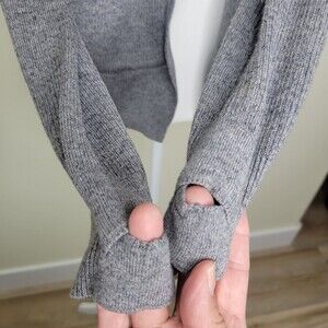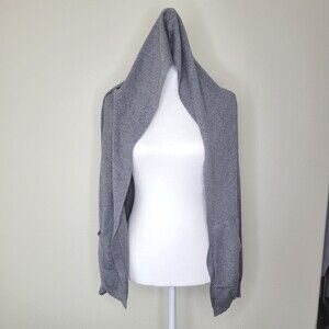 Cozy Lululemon Cabin Yogi hooded Wrap Heathered Gray with pockets inside and outside cardigan. Sweater is missing size tag looks to be about a size 4, so please see photos for approximate measurements.