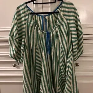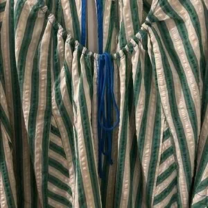 In EUC. Loose, comfortable jumper with shorts. Featuring a vibrant green and white design, it's perfect for a sunny day by the water.