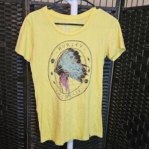 Hurley MCMXCIX Indian Headdress Yellow Tee Y2k Fitted