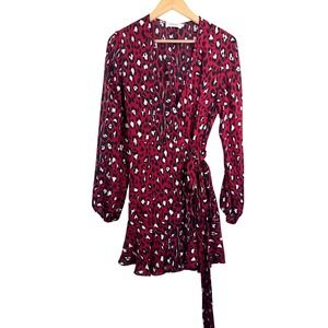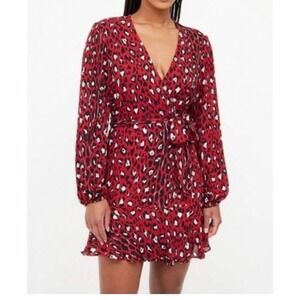 A.L.C. Red Michaela silk Leopard Print Wrap Dress boho ruffles 90s Y2K sz 8