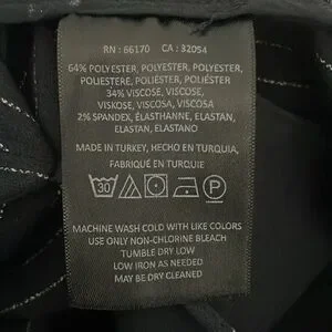 64% Polyester, 34% Viscose, 2% Elastane. Machine wash.