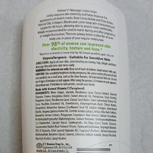 Experience the nourishing power of Palmer's Cocoa Butter Formula Massage Lotion for Stretch Marks. This white and green lotion is enriched with Vitamin E and collagen to help improve skin elasticity and reduce the appearance of stretch marks. Perfect for daily use, it leaves your skin feeling soft and smooth.