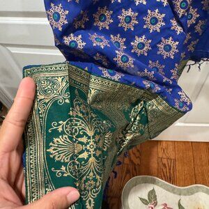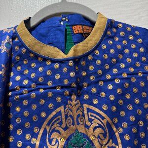 It's a beautiful royal blue salwar suit with screen print. Pant style bottom