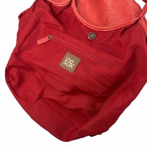 The Sak Boho Medium Red Leather Hobo Tote Bag Shoulder Purse