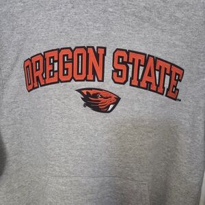Champion gray hoodie with bold orange Oregon State Beavers logo. Ideal way to casually rep your favorite college. Cozy and comfortable this is a closet must have for Beaver fans.