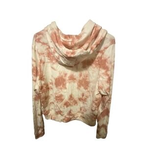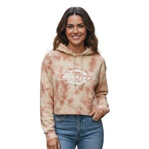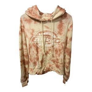 Stylish tie-dye hoodie by Dickies. Features a blend of cream and pink colors. Comfortable and trendy design.