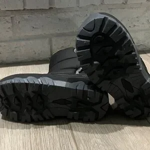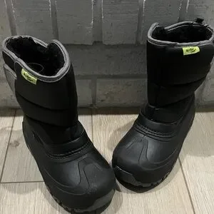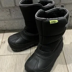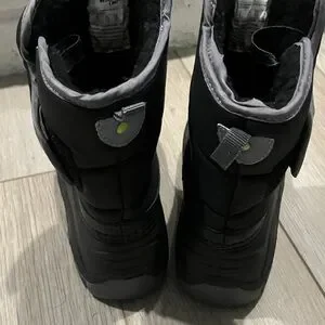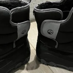 Like New! Durable black snow boots with gray trim and faux fur lining. Waterproof, warm and comfortable for winter. Size 1.
